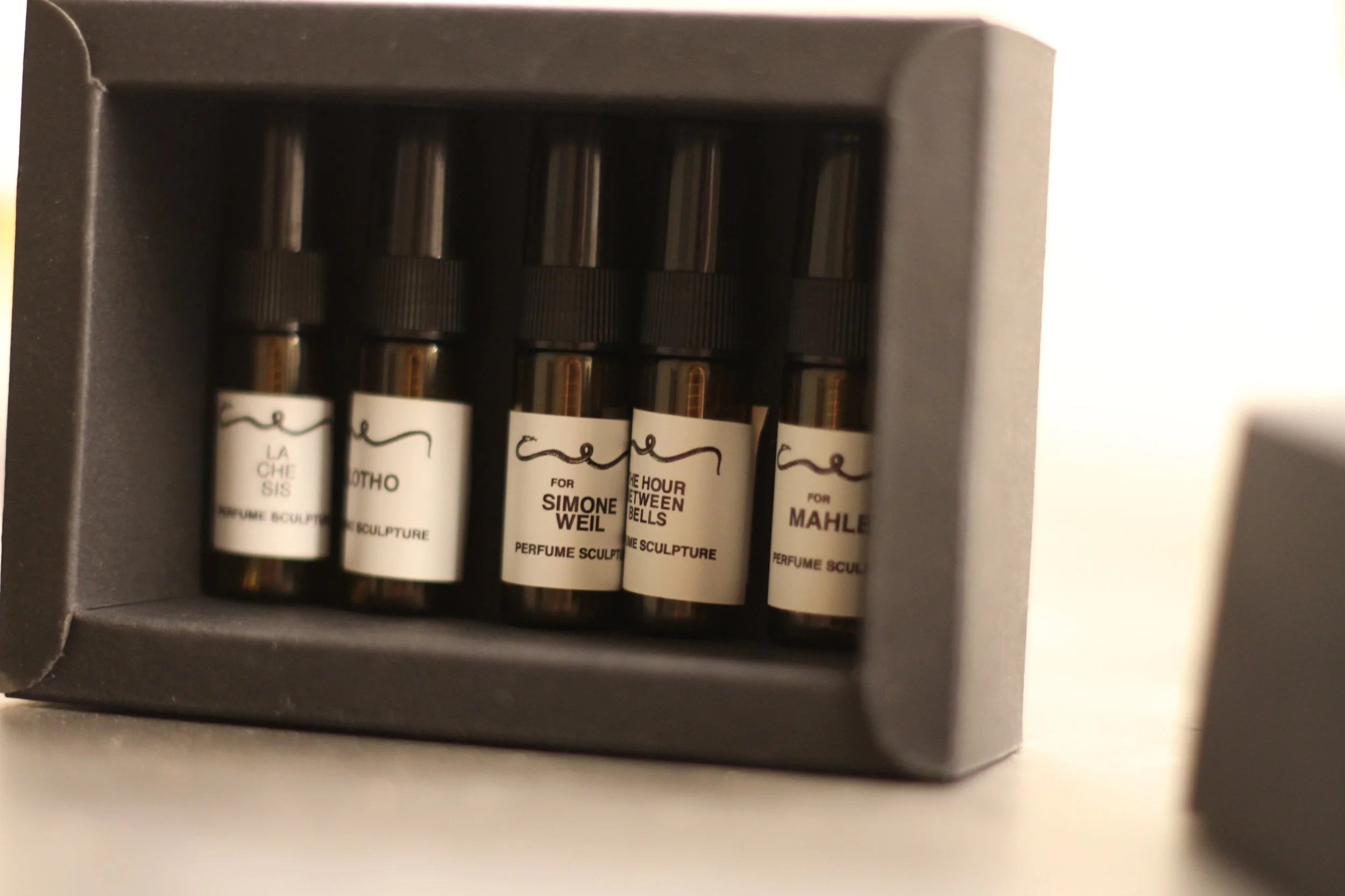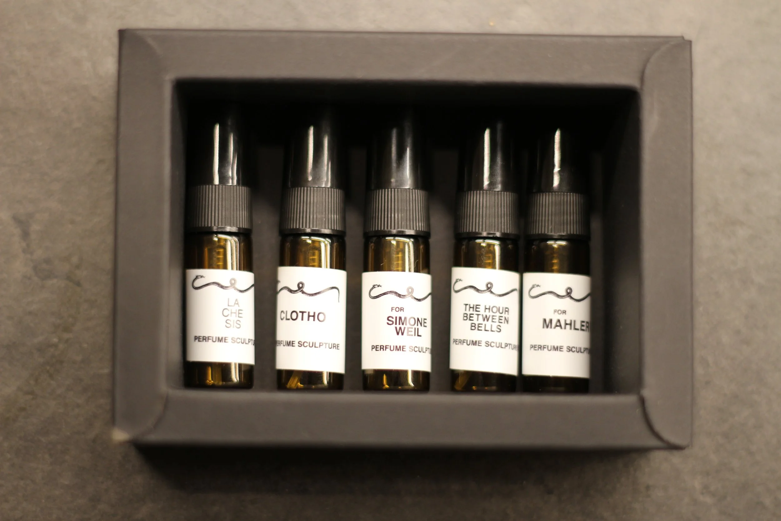 Perfume Sculptures The Hour Between Bells: Volcanic Lavender €95.00 Lachesis Vetiver Guaiac Warm Veil from €95.00 Mahler — A Vetiver Scent That Listens from €95.00 Tsoyal – A Gift Freely Given €95.00 Simone Weil's Window to Infinity €95.00 Clotho — Pink Pepper as an Echo in the Air: €95.00 Green Fig Scent Sculpture €95.00 Scented Vetiver Ink €37.00 Sold out Lachesis Incense Set with Vetiver and Guaiac €35.00 Sample Set Sale Price: €35.00 Original Price: €45.00 Sale Citrus Green Reeds Diffusor Edition €67.00